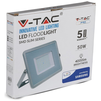 V-TAC Προβολέας LED SMD 50W 4000lm 100° IP65 Samsung Chip G2 Γκρι Σώμα Φυσικό Λευκό 21464