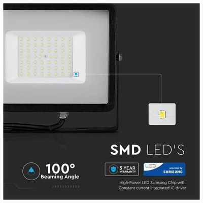 V-TAC Προβολέας LED SMD 50W 4000lm 100° IP65 Samsung Chip G2 Μαύρο Σώμα Φυσικό Λευκό 21407 V-TAC