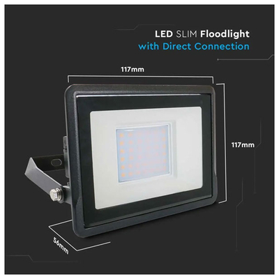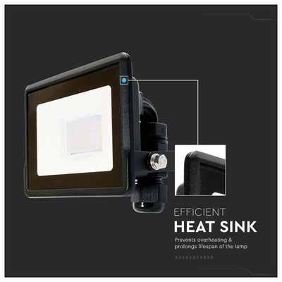 V-TAC Προβολέας LED Samsung chip 20W Φυσικό λευκό 4000K Μαύρο σώμα με απευθείας σύνδεση 20308