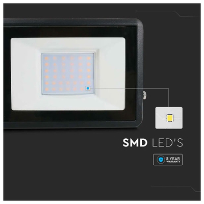 V-TAC Προβολέας LED SMD 50W 4000lm 100° IP65 Samsung Chip G2 Μαύρο Σώμα Ζεστό Λευκό 21406