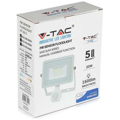 LED Προβολέας 20W SAMSUNG CHIP slim SMD Λευκός με Ανιχνευτή Κίνησης IP65 Ψυχρό Λευκό 450