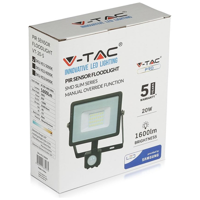 LED Προβολέας 20W slim SMD SAMSUNG CHIP με Ανιχνευτή Κίνησης IP65 Μαύρος Φώς Ημέρας 5 Χρόνια Εγγύηση 452