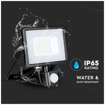 LED Προβολέας 20W slim SMD SAMSUNG CHIP με Ανιχνευτή Κίνησης IP65 Μαύρος Ψυχρό Λευκό 5 Χρόνια Εγγύηση 453