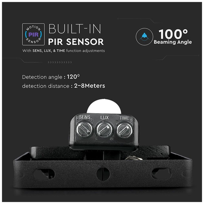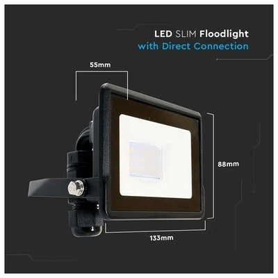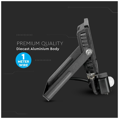 LED Προβολέας 10W slim SMD SAMSUNG CHIP με Ανιχνευτή Κίνησης Μαύρος IP65 Ψυχρό Λευκό 5 Χρόνια Εγγύηση 438
