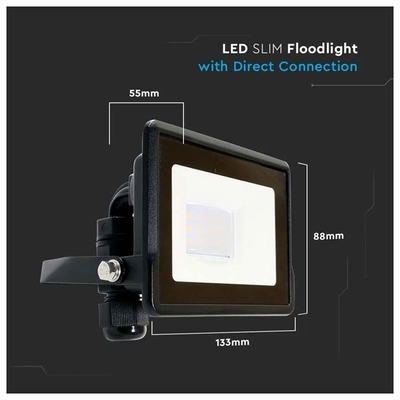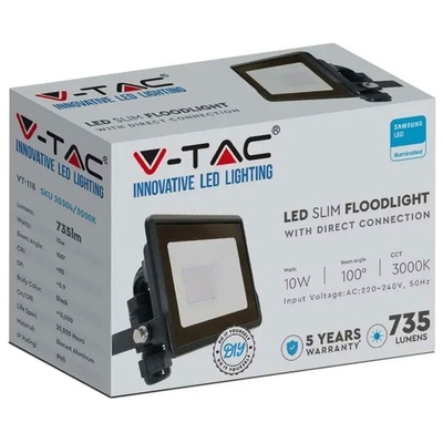 V-TAC Προβολέας LED Samsung chip 20W Θερμό λευκό 300K Μαύρο σώμα με απευθείας σύνδεση 20307