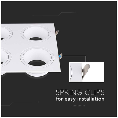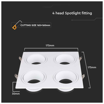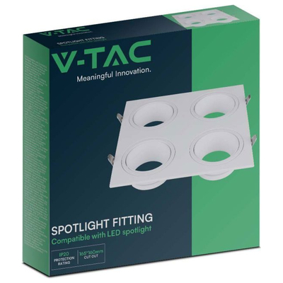 V-TAC Βάση Σποτ Χωνευτή Τετράγωνη Σταθερή για 4xGU10 IP20 Πλαστική 175x175x30mm Άσπρη 23003