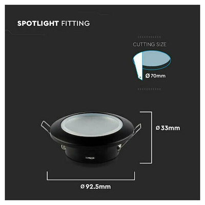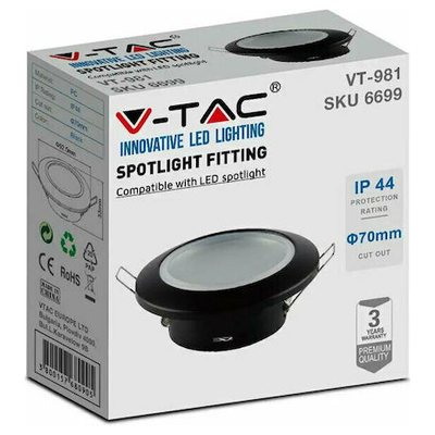 V-TAC Βάση Σποτ Χωνευτή Στρογγυλή Σταθερή για GU10 Aδιάβροχη IP44 Ø92.5x33mm Μαύρη 6699