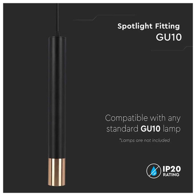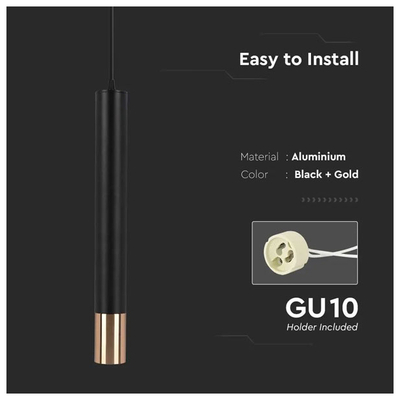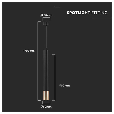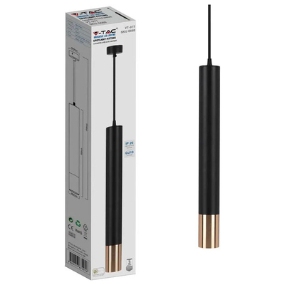 V-TAC Κρεμαστό Φωτιστικό Σποτ Οροφής για GU10 Αλουμινίου Στρογγυλό Ø60x500mm Μαύρο με Χρυσό Σώμα 6689