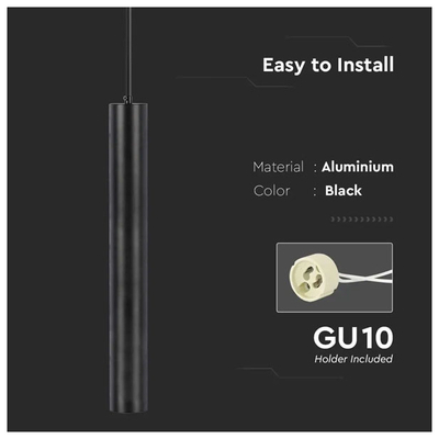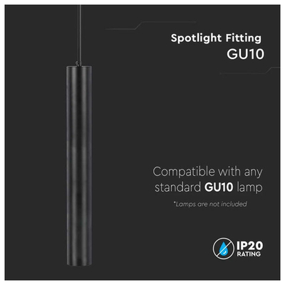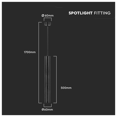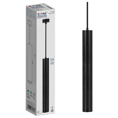 V-TAC Κρεμαστό Φωτιστικό Σποτ Οροφής για GU10 Αλουμινίου Στρογγυλό Ø60x500mm Μαύρο Σώμα 6687