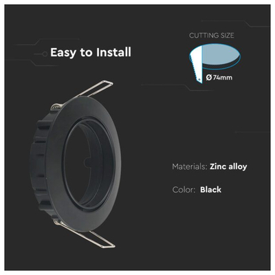 V-TAC Χωνευτό φωτιστικό Spot GU10 Στρογγυλό μαύρο σώμα