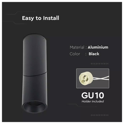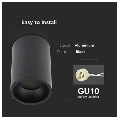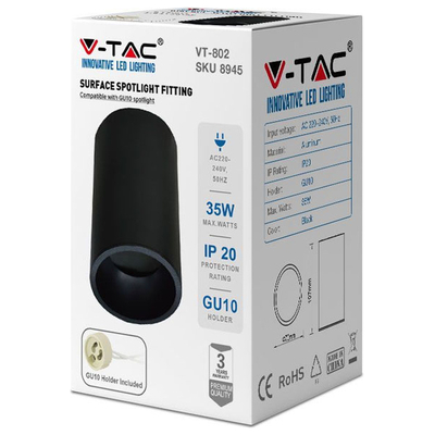 V-TAC Φωτιστικό Σποτ Οροφής για GU10 Μαύρο Σώμα 8945