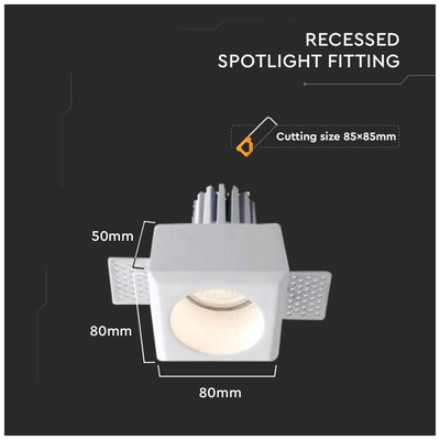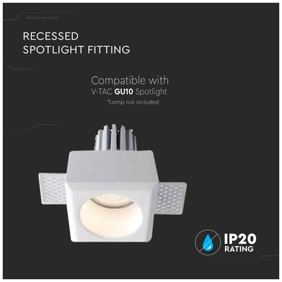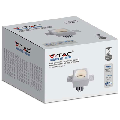 V-TAC Γύψινη Χωνευτή Βάση Σποτ για GU10 LED Τετράγωνη Άσπρη 6761