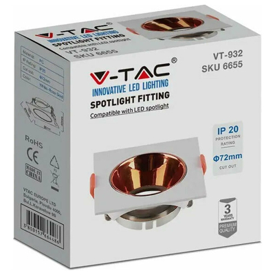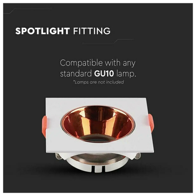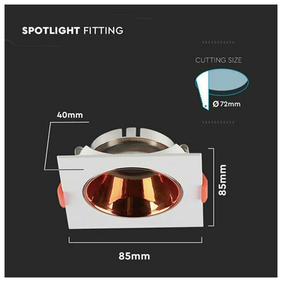 V-TAC Βάση Σποτ Χωνευτή Τετράγωνη Κινητή για GU10 IP20 Πλαστική 85x85x40mm Άσπρη με Ροζ Χρυσό 6655