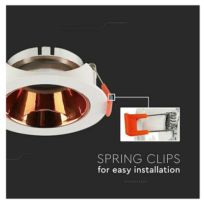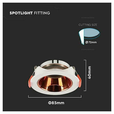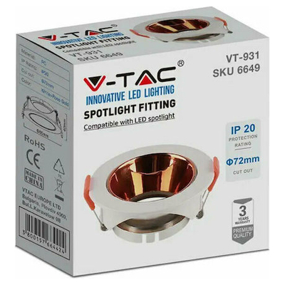 V-TAC Βάση Σποτ Χωνευτή Στρογγυλή Κινητή για GU10 IP20 Πλαστική Ø85x40mm Άσπρη με Ροζ Χρυσό 6649