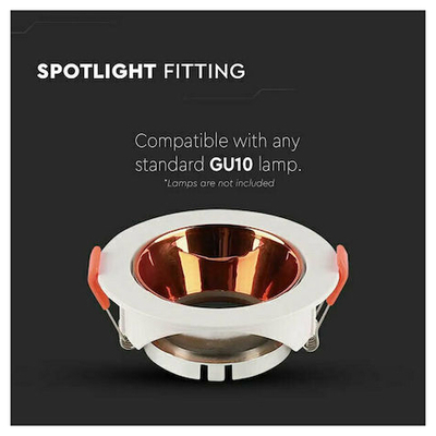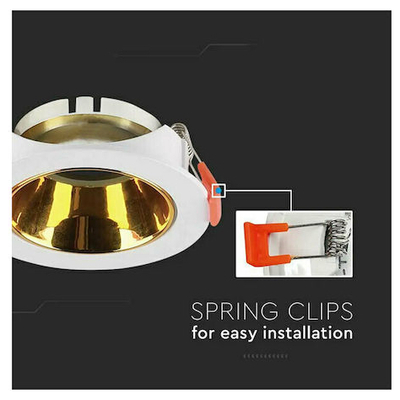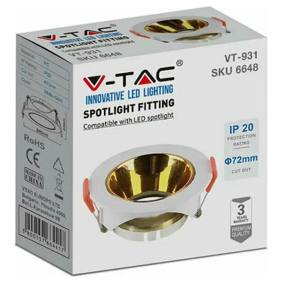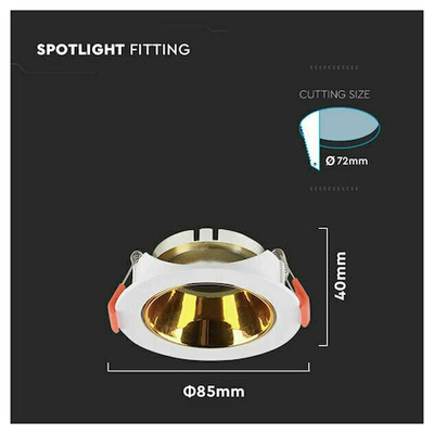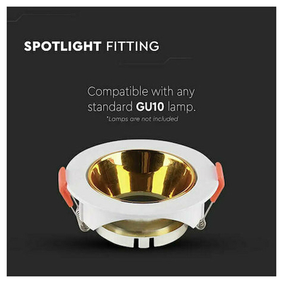 V-TAC Βάση Σποτ Χωνευτή Στρογγυλή Κινητή για GU10 IP20 Πλαστική Ø85x40mm Άσπρη με Χρυσό 6648