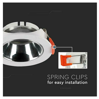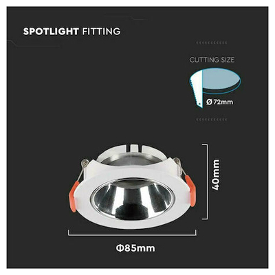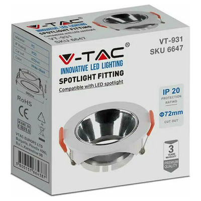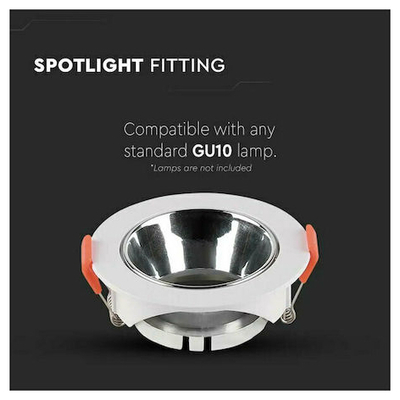 V-TAC Βάση Σποτ Χωνευτή Στρογγυλή Κινητή για GU10 IP20 Πλαστική Ø85x40mm Άσπρη με Χρώμιο 6647
