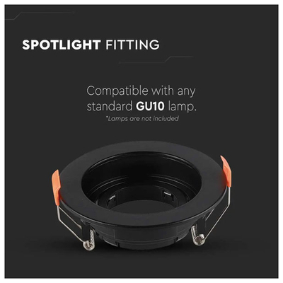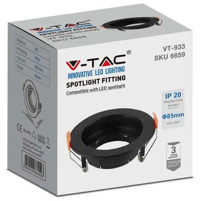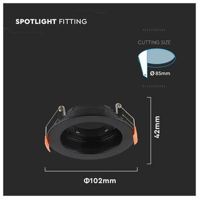 V-TAC Βάση Σποτ Χωνευτή Στρογγυλή Κινητή για GU10 IP20 Πλαστική Ø102x42mm Μαύρη 6659