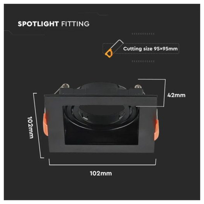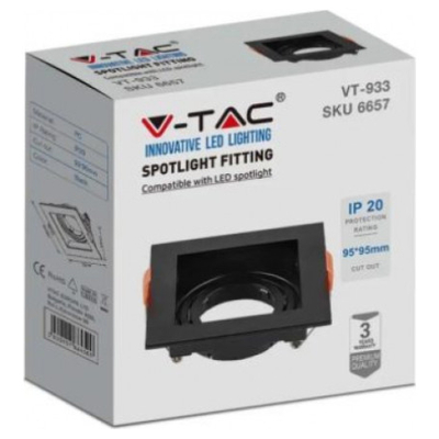 V-TAC Χωνευτό φωτιστικό Spot GU10 τετράγωνο μαύρο κινητό