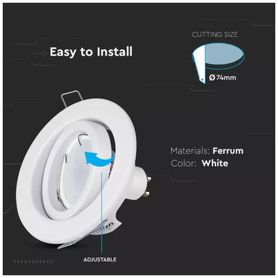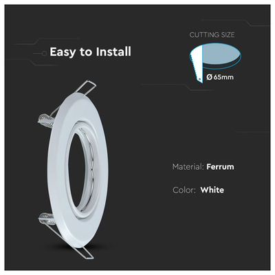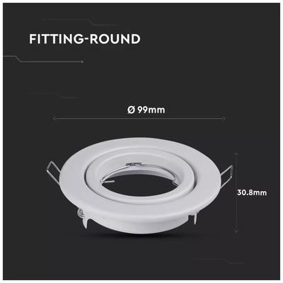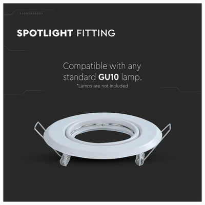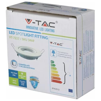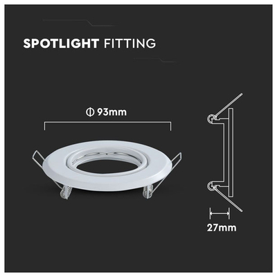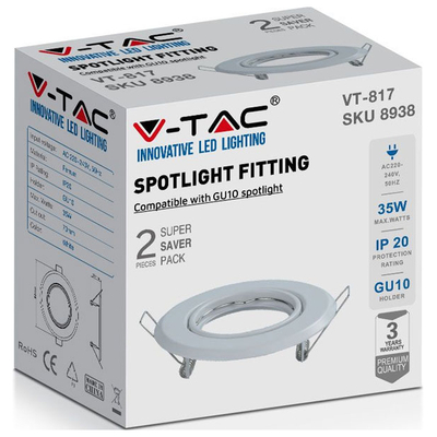 V-TAC Βάση Σποτ Χωνευτή GU10 Στρογγυλή Άσπρη 93x27mm 2τμχ./συσκ. 8938