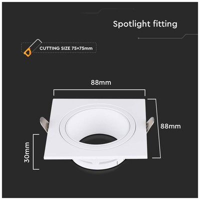 V-TAC Βάση Σποτ Χωνευτή Τετράγωνη Σταθερή για GU10 IP20 Πλαστική 88x88x30mm Άσπρη 10297