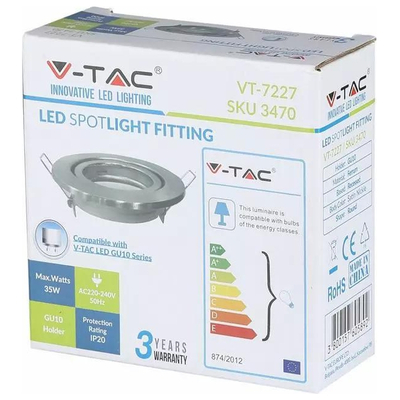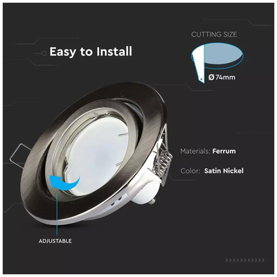 V-TAC Βάση Σποτ Χωνευτό Κινητό Σατινέ Νίκελ 3470