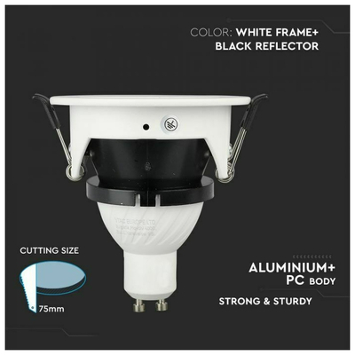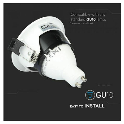 V-TAC Φωτιστικό οροφής σποτ χωνευτό GU10 στρογγυλό λευκό & μαύρο σώμα 8597