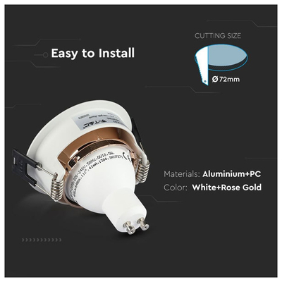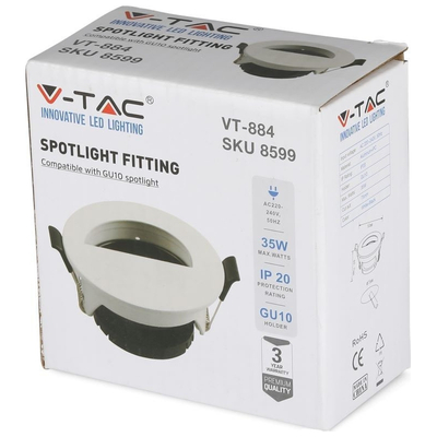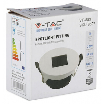 V-TAC Χωνευτό φωτιστικό Spot GU10 Στρογγυλό λευκό, με ημικύκλια άσπρη κοπή 8599