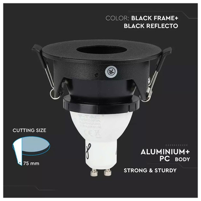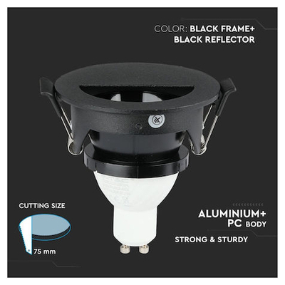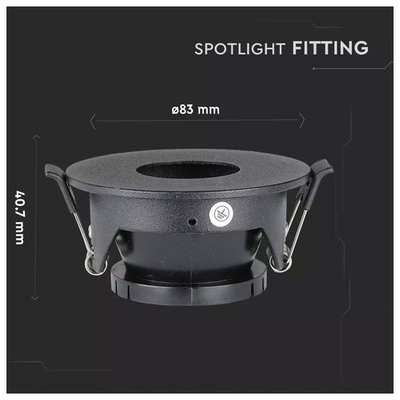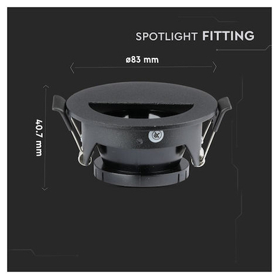 V-TAC Βάση Spot Χωνευτή GU10 Στρογγυλή Μαύρο Σώμα 83x83x40.7 8595