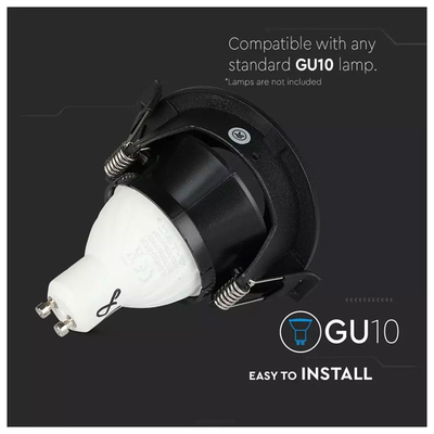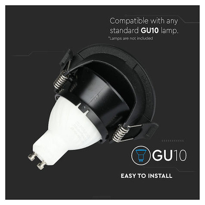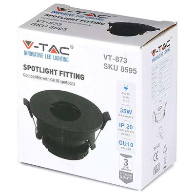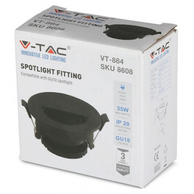 V-TAC Φωτιστικό οροφής σποτ χωνευτό GU10 στρογγυλό μαύρο σώμα 8608