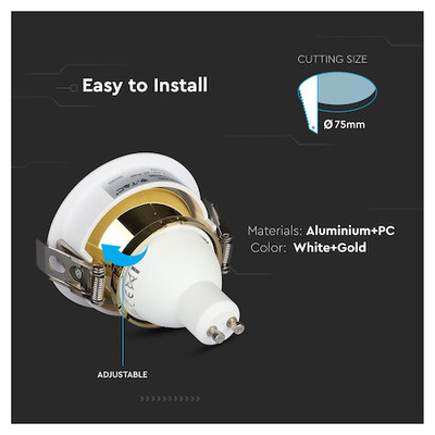 V-TAC Φωτιστικό οροφής σποτ χωνευτό GU10 σώμα λευκόχρυσό στρογγυλό 3158