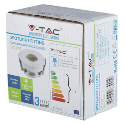 V-TAC Φωτιστικό οροφής σποτ χωνευτό GU10 σώμα λευκό/χρώμιο στρογγυλό SKU: 3160