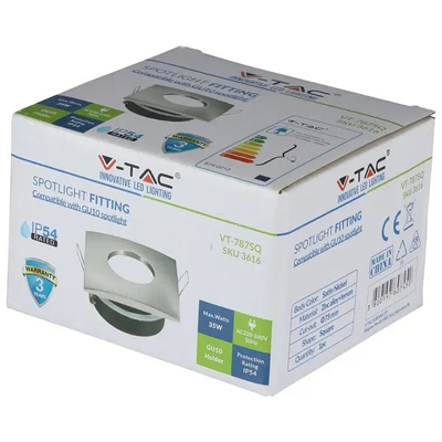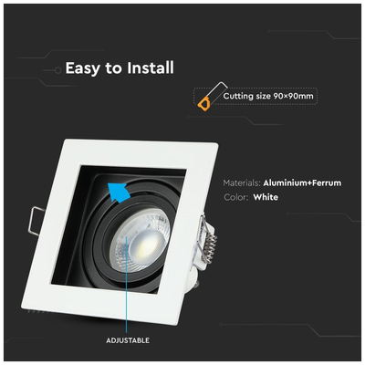 Χωνευτό Φωτιστικό Σποτ GU10 Τετράγωνο Λευκό σώμα για τρύπα οροφής Φ90 V-TAC 3597