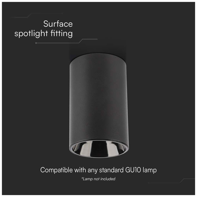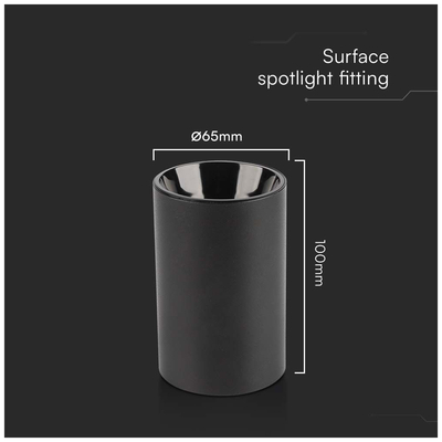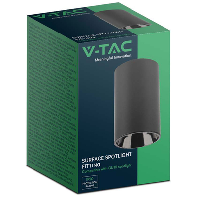 V-TAC Φωτιστικό Σποτ Οροφής για GU10 LED IP20 Ø100x65mm Στρογγυλό Μαύρο Σώμα 10380
