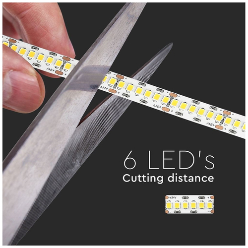 V-TAC PRO SKU 333 LED Strip , μια επιλογή φωτισμού που συνδυάζει υψηλή απόδοση και πρακτικότητα. Με συνολική ισχύ 180W συνολικής ( 18W/m ) και τεχνολογία Samsung SMD2835 LED Chip , αυτή η λωρίδα LED προσφέρει φωτεινή ροή 1500 lm/m ( συνολικά 15000 lm ) στα 24 V και δέσμη φωτός 120° . Δυνατότητα κοπής κάθε 2,5 cm , επιτρέποντας άνευ προηγουμένου ευελιξία εγκατάστασης, με πάχος 10 mm με βαθμό προστασίας IP20 προσαρμοσμένο για εσωτερικούς χώρους. Χάρη στον λόγο απόδοσης φωτός 83 lm/W και τη θερμοκρασία χρώματος (CTI) 6400K και τον υψηλό δείκτη απόδοσης χρωμάτων CRI>95 , εξασφαλίζει βέλτιστη φωτεινότητα με μειωμένη κατανάλωση ενέργειας. Το πηνίο προσφέρει μήκος 10 μέτρα και 240 LED/m . Εξοπλισμένο με κόλλα στο πίσω μέρος για εύκολη εφαρμογή και σύνδεση με το δίκτυο μέσω καλωδίων συγκόλλησης, προσαρμόζεται τέλεια σε ένα ευρύ φάσμα περιβαλλόντων.