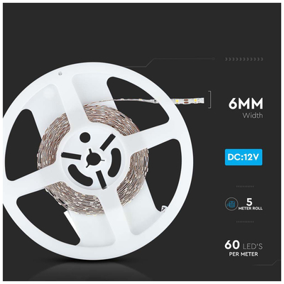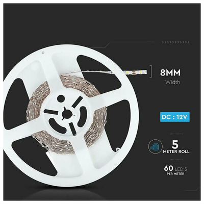 V-TAC Ταινία LED DC:12V SMD2835 5W/m IP20 6500K ψυχρό λευκό σε σχήμα s ρολό 5m 212561