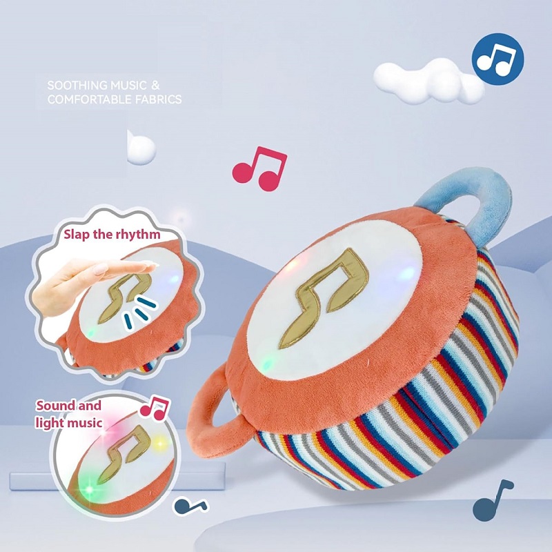 Λούτρινο βρεφικό παιχνίδι τύμπανο με ήχους και με απαλή, υποαλλεργική επένδυση, απόλυτα φιλική στο δέρμα.