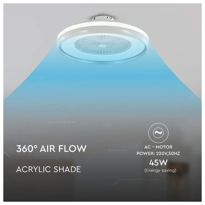 Ανεμιστήρας Οροφής V-TAC 35W Λευκός με 3 πτερύγια μαζί με Φωτιστικό Ρυθμιζόμενος 3 σε 1 με RF control 7919