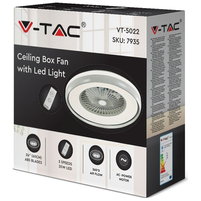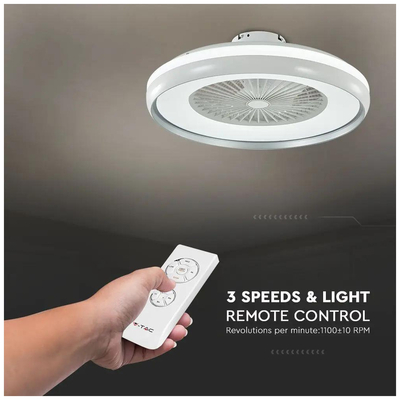 V-TAC Ανεμιστήρας οροφής LED 45W 3 σε 1 λευκό σώμα - γκρι δαχτυλίδι 7 πτερυγίων με ρύθμιση μέσω RF control 7935