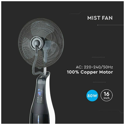 V-TAC Επιδαπέδιος τροχήλατος ανεμιστήρας υδρονέφωσης 16” 80W με 3 πτερύγια μαύρος 7936