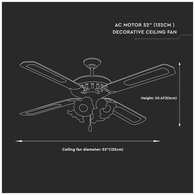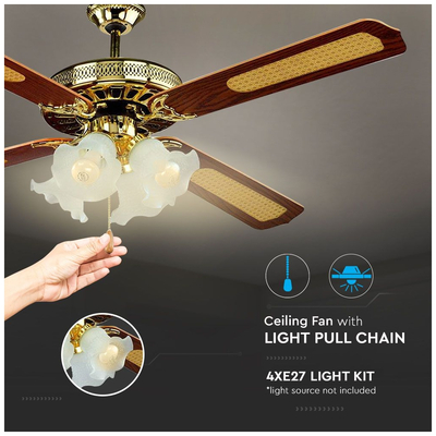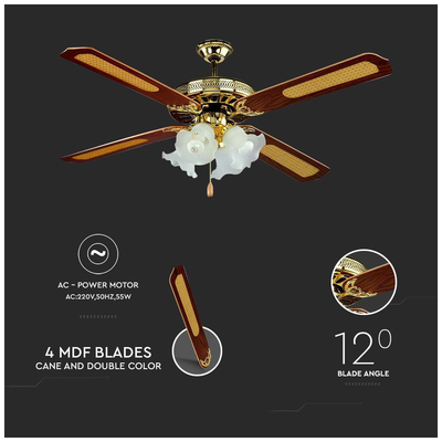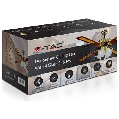Ανεμιστήρας Οροφής V-TAC 55W με 4 πτερύγια μαζί με Φωτιστικό με 4 Ντουί Ε27 Ρυθμιζόμενος 7921
