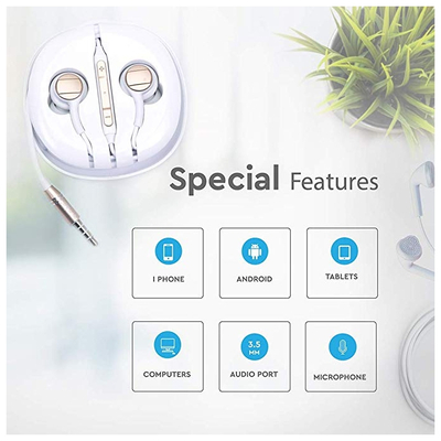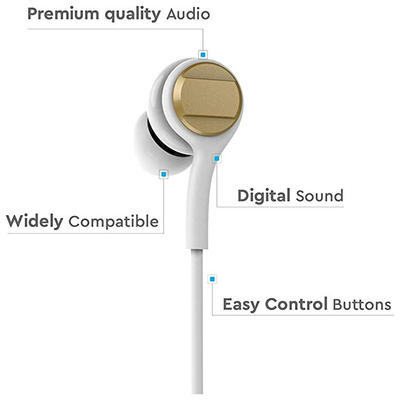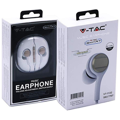 V-TAC Ενσύρματα Ακουστικά Earphone Handsfree για κινητά και λάπτοπ σε Λευκό - Χρυσό Χρώμα 7707