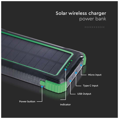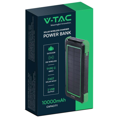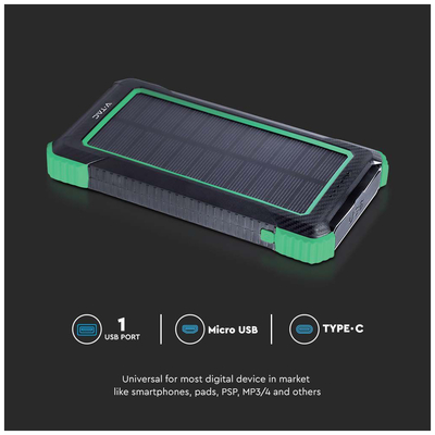 V-TAC Ηλιακό Power Bank 10000mAh 10W με Θύρα USB-A Μαύρο