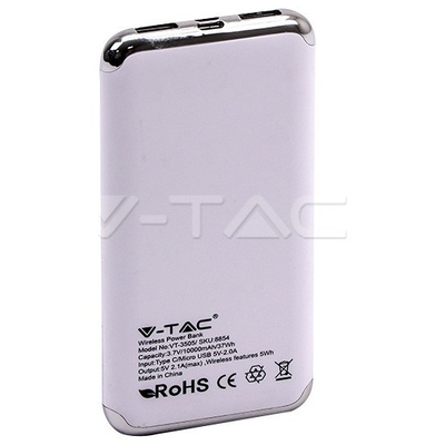 Φορτιστής Μπαταριά Power Bank 10000mAh με Ασύρματη Φόρτιση, Οθόνη και δύο Θύρες USB Χρώμα Λευκό 8854