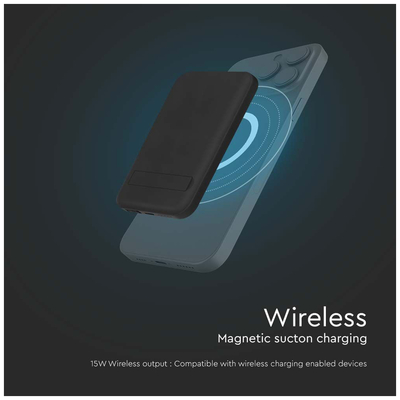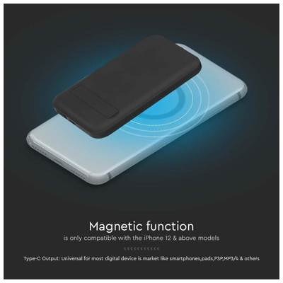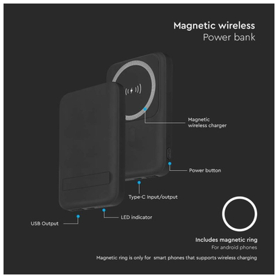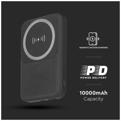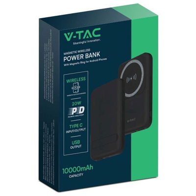 V-TAC PowerBank 10.000 mAh Γρήγορης Φόρτισης Μαγνητικό με Μεταλλικό Δαχτυλίδι για Android και Ασύρματη Φόρτιση Μαύρο 23038