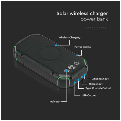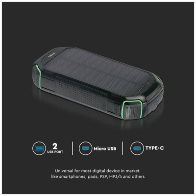 V-TAC Ηλιακό Power Bank 30000mAh 10W με Θύρα USB-A και Θύρα USB-C Μαύρο
