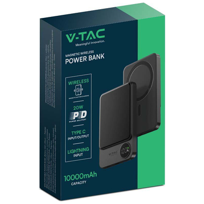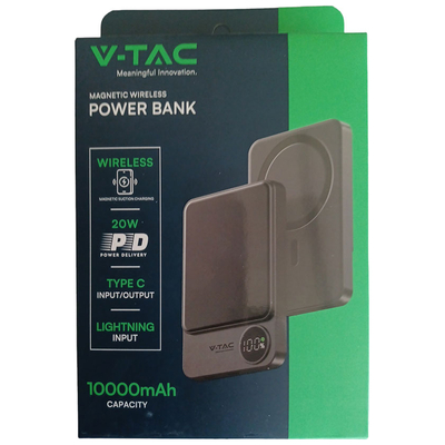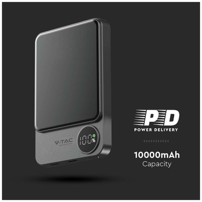 V-TAC MagSafe Power Bank 10000mAh 20W με Θύρα USB-C Σκούρο Γκρι