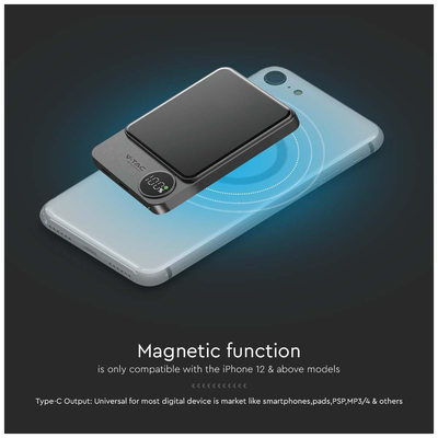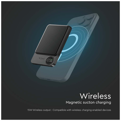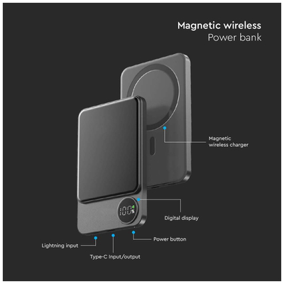 V-TAC MagSafe Power Bank 5000mAh 20W με Θύρα USB-C Σκούρο Γκρι