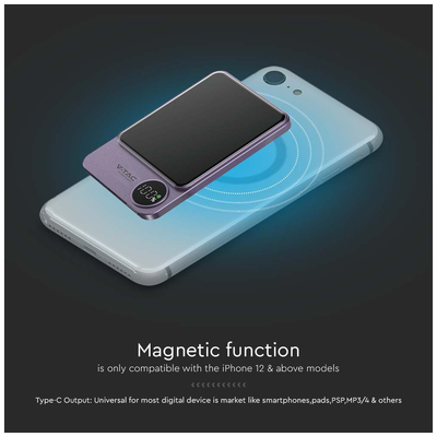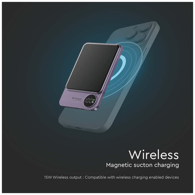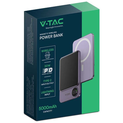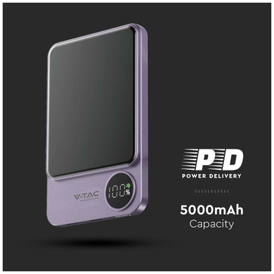 V-TAC MagSafe Power Bank 5000mAh 20W με Θύρα USB-C Μωβ