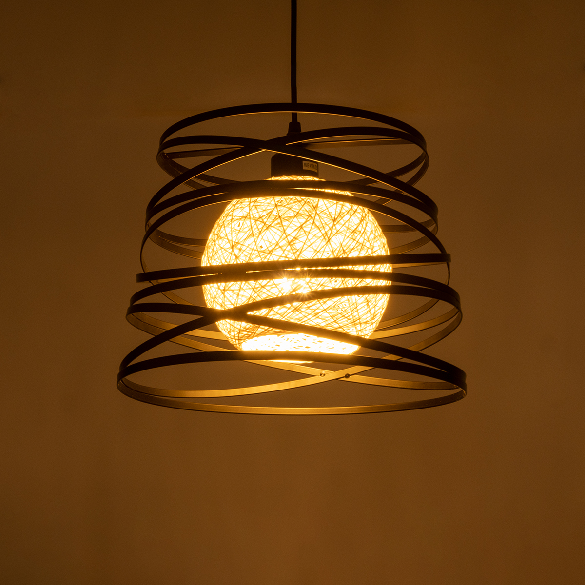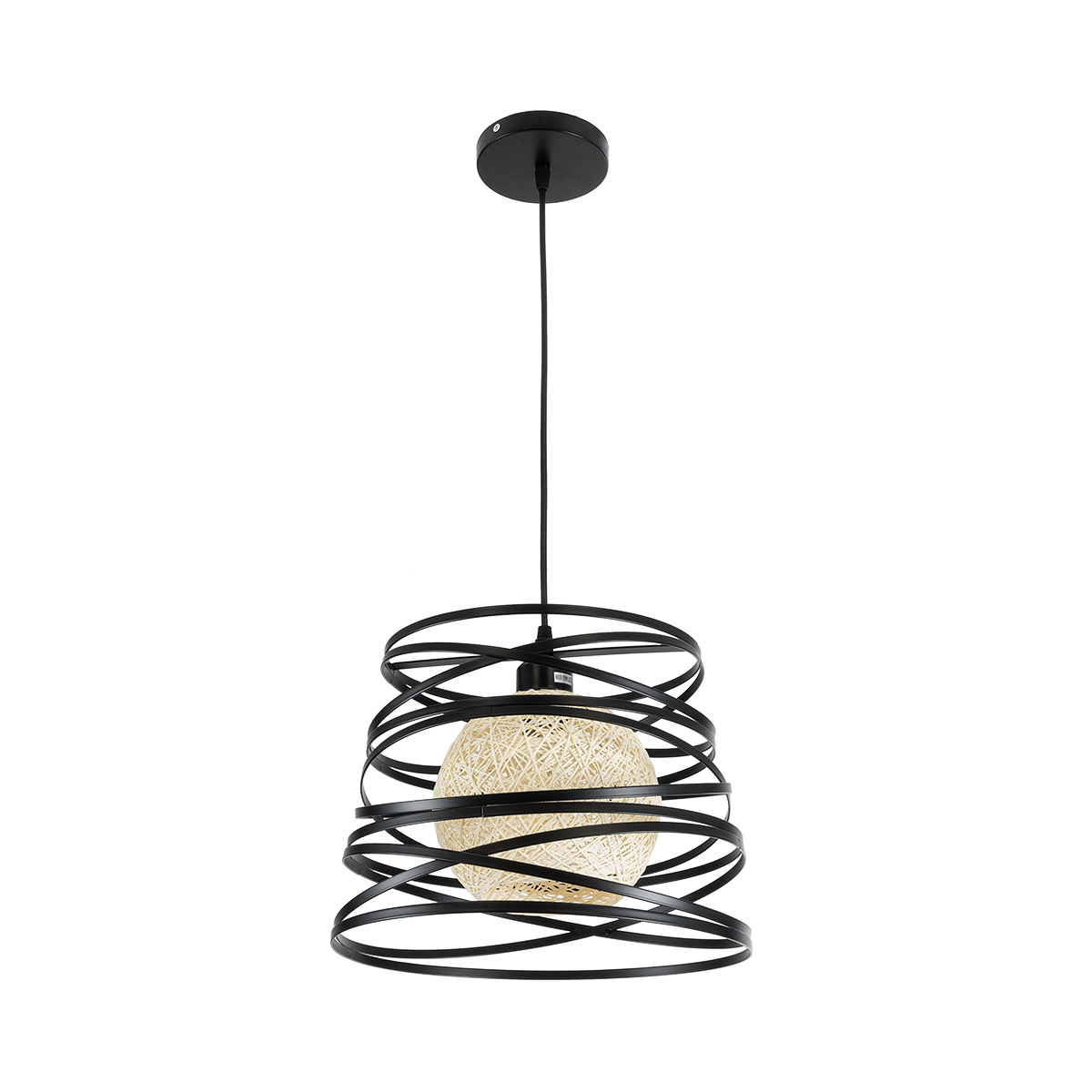 GLOBOSTAR® CARTER 00961 Μοντέρνο Κρεμαστό Φωτιστικό Οροφής με Ντουί 1 x E27 AC 220-240V IP20 - Μαύρο & Μπεζ - Μ32 x Π32 x Υ25cm