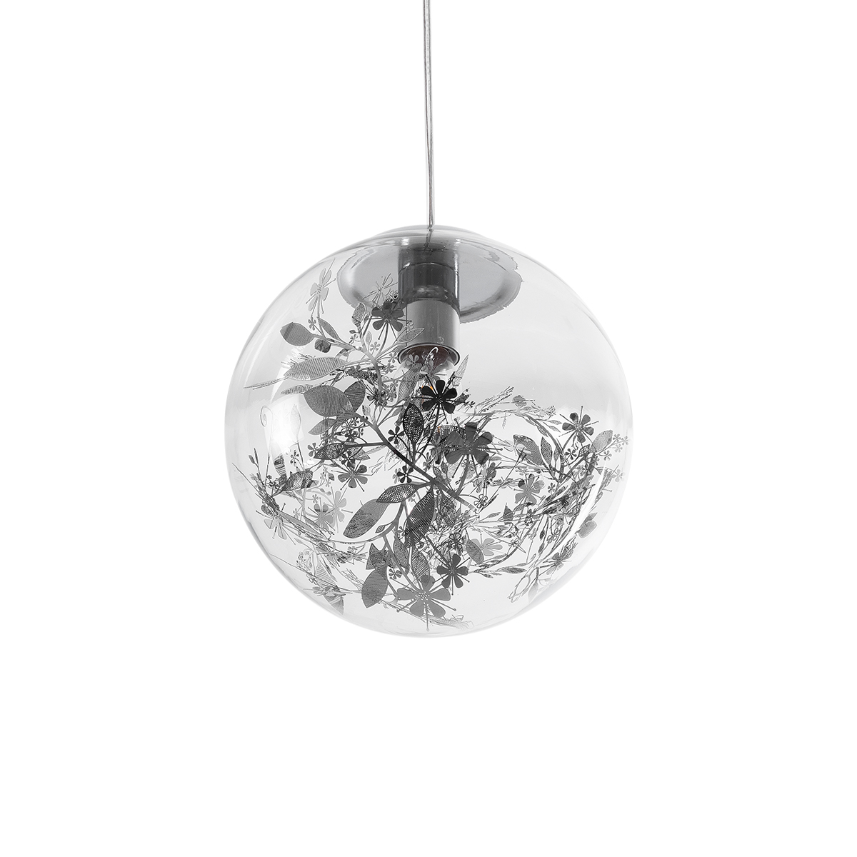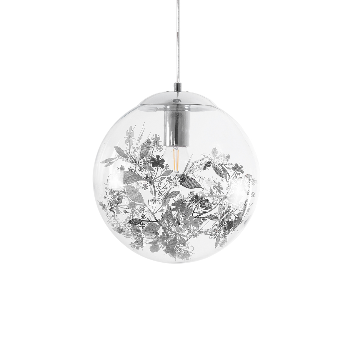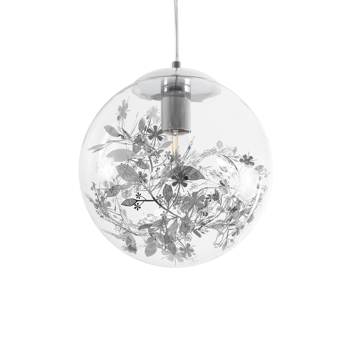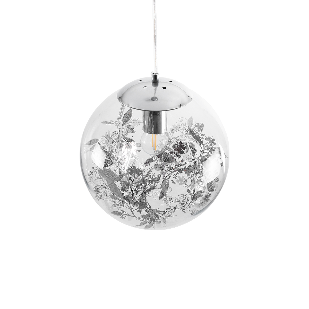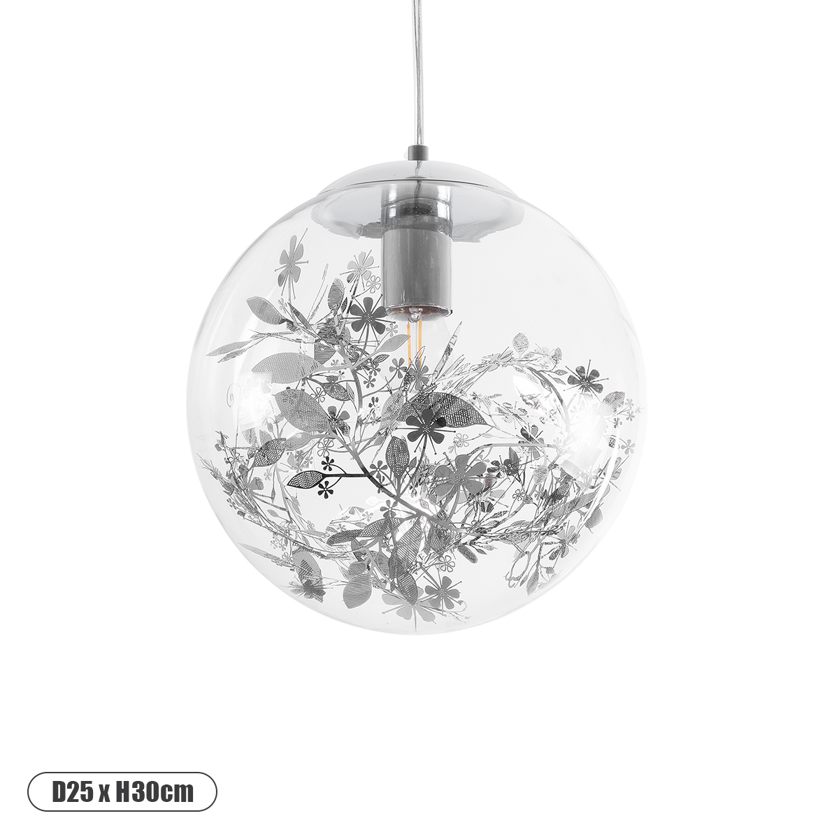 GLOBOSTAR® HARPER 01510 Μοντέρνο Κρεμαστό Φωτιστικό Οροφής με Ντουί 1 x E27 AC 220-240V IP20 - Διάφανο & Ασημί - Μ25 x Π25 x Υ30cm